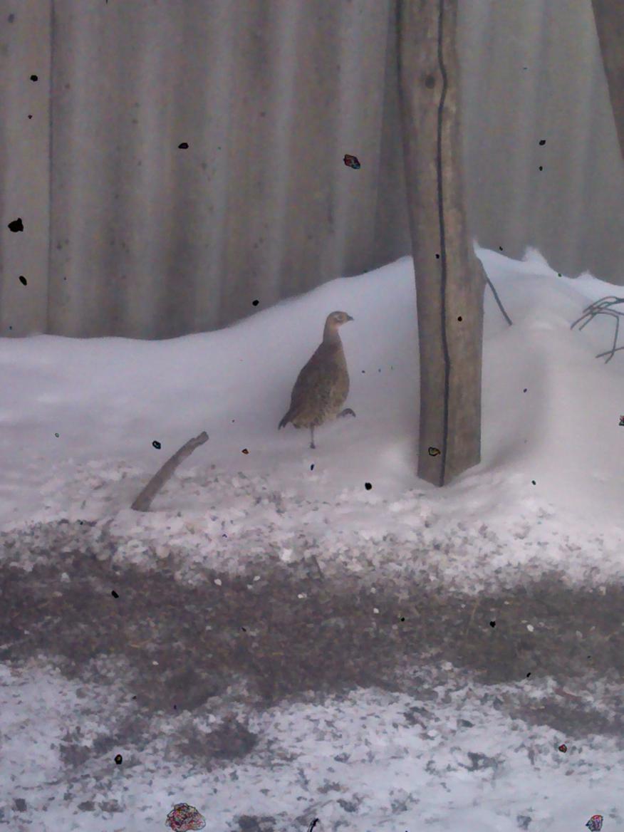 Приехал только что к теще на выходные,разгружаю машину несу ружьё и причиндалы в дом тесть смеётся:ОХОТНИЧЕК дичь по огороду летает , а он по полям за ней бегает.и показывает на забор метрах в 10 на задах... смотрю сидит курица фазана!! Всю зиму говорит сюда днём прилетает,с курями на задах попасётся и на ночь в сторону речки улетает.фото не успел сделать если прилетит сфоткаю покажу