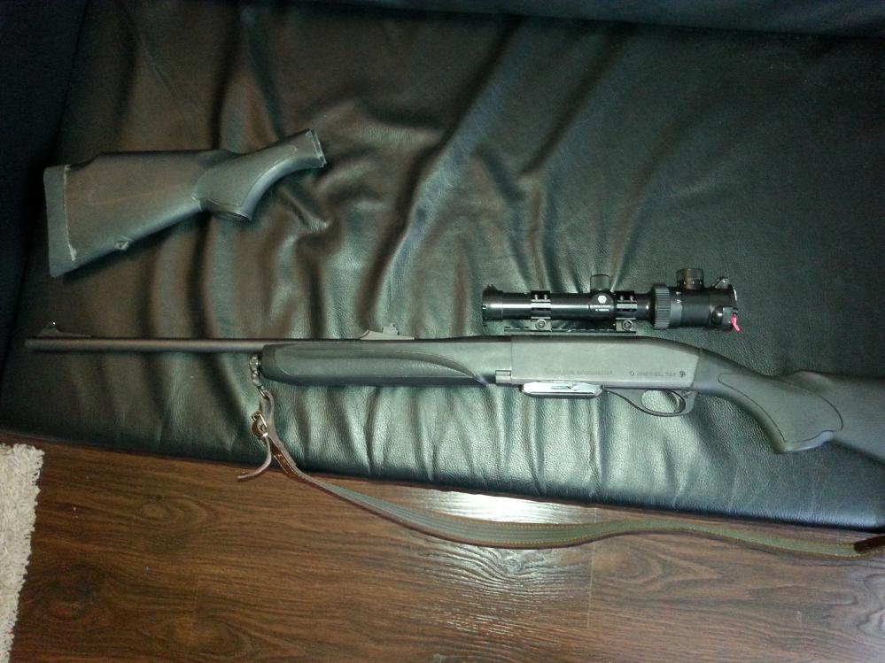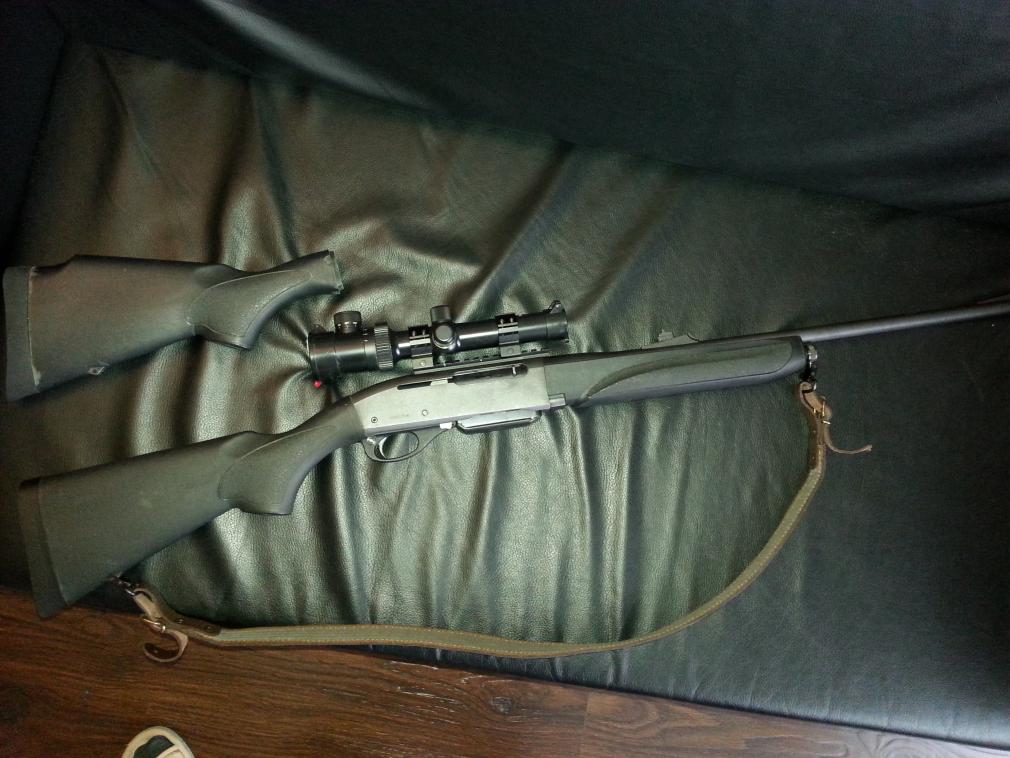 Продаю нарезной полуавтоматический карабин Remington 750 Woodsmaster в калибре 308 win (7.62Х51), 4+1 патрон, длина ствола 560мм, twist 10, настрел 200 патронов, износа ствола нет (проверял промерочными калибрами у мастера в Охотомании), автоматика работает отлично - не перезарядов или клинов при перезарядке любыми патронами нет, ест как импорт так и наши. Использовал только на охоте, по бумаге стрелять не фанат, отлично подходит для загонной охоты ! Оптика переменной кратности VOMZ PV 1,2-6Х24L - новая, с подсветкой, сетка LS, недавно поставил и пристрелял на 130 метров (карьер на большую дистанцию не позволил). В комплекте дополнительный приклад с щекой, мне больше был удобен без щеки - когда стрелял с открытых прицельных приспособлений. За карабин не стыдно. Цена комплекта 60 т.р.