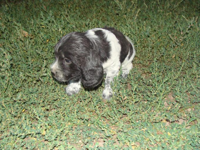 Щенки появились 12.07.2016 года. Два кобелька, одна сучка. Окрас у всех черно - пегий в крапе. В продаже к 12.08.2016 г., один кобель и одна сука.