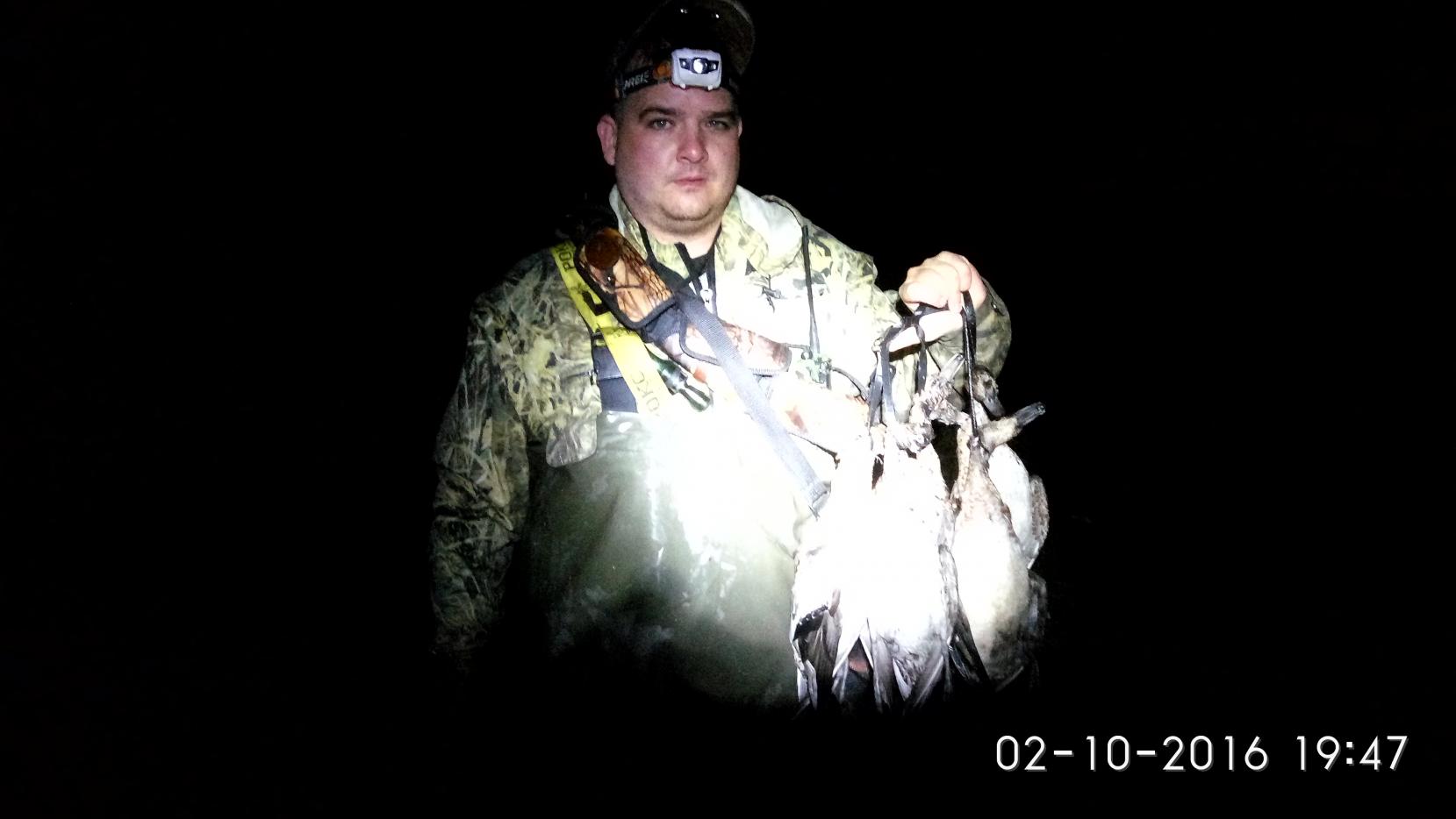 2крякаша,2серых. На манок ноль внимания, сидит оч туго, взлетает из под ног. Серые уже перелиняли, у крякашей шея вся в пеньках. Добрая выдалась охота. |