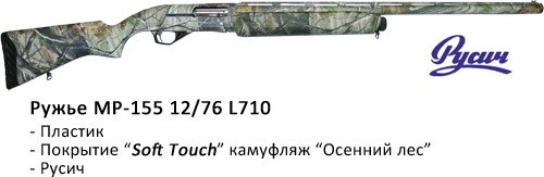 Уважаемые охотники и спортсмены, после основного турнира по стрельбе (17 сентября) будет проведена лотерея где будет розыграно 7 призов . Один из организаторов мероприятия - официальный дилер Ижевского Механического Завода - компания "Ижевские ружья" презентует главный приз этой лотереи - МР-155 "Русич" в новом покрытии "Soft Touch"
