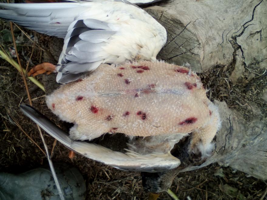 Попалась одна особь в этом году с интересным ранением. В крыле нашли дробь размером 000 или 0000 -не мерил, точно не скажу. Так вот, дробь прошла снизу крыла наверх и застряла в коже (мясо прошила, а кожу нет), как в целофановом пакетике получилась. Я это к чему -интересно, это с какого ж расстояния нужно было лупануть что такая крупная дробь не пробила крыло???? А заросла конкретно, старое уже ранение.