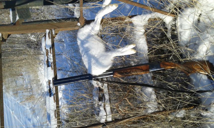 Замечаю на дороге еле видный след зайца. Прямиком в дол. Вроде следов стало больше, возвращаюсь, скидка, натоптал, сразу не разберешь. Товарищ на бугру стоит, собачка внизу бегает. Как только отвернулся, косой поднялся и по дороге в гору. Мне видны только уши и иногда голова появляется. Выстрел,второй, косого не видать. Эмоций вагон, вес 4.5 кг. Собака проходила от него в 1.5 метрах. Матерый зверь).
