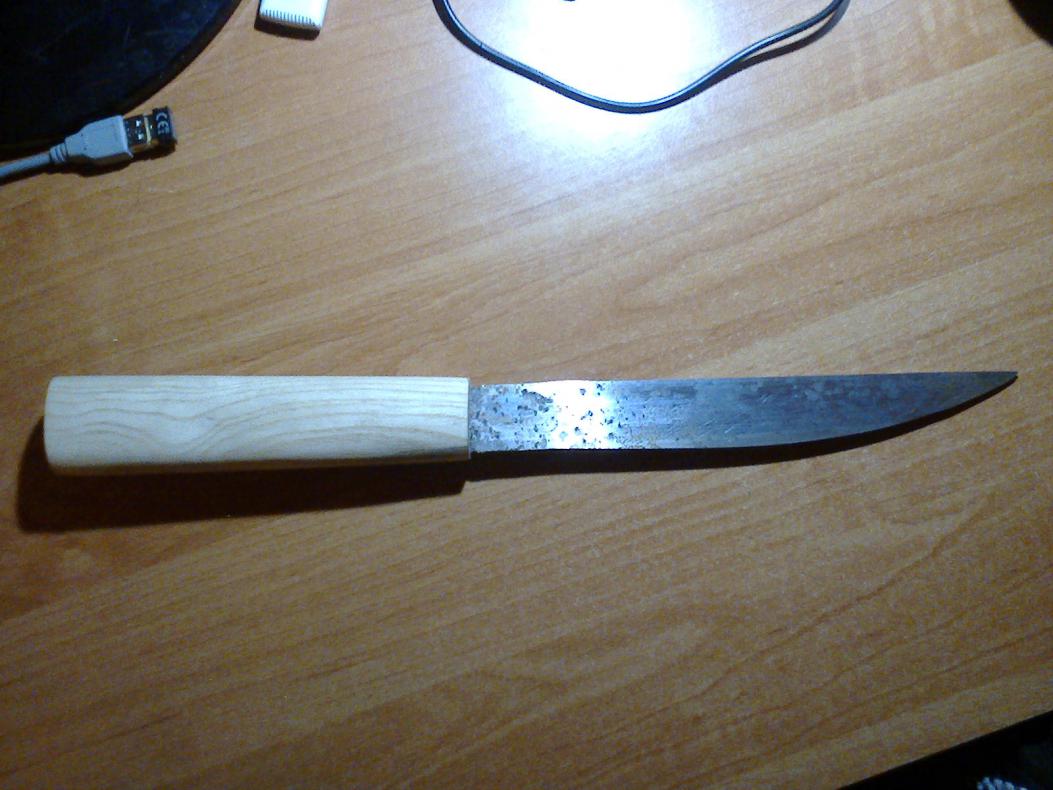 Ну вот и готов ножичек. К сожалению не могу снять видео и показать нож в работе.