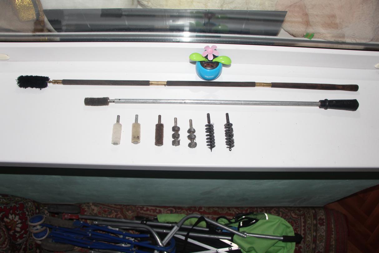 Кто - то звонил мне не так давно с Форума, спрашивал шомполы для чистки ружей, съездил, порылся нашел парочку надежных, разборных, проверенных шомполов с набором ершиков, фото прилагаю. Остатки прибамбасиков (на фото - выше) пока тоже в продаже.