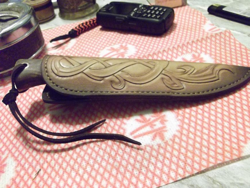 Ножны сшиты вручную (кожа-"фанера"), рукоять-березовый кап,гарда-латунь,рог лося,темляк.Заточка-бритва.Нож разработан,изготовлен и собран Романом Серковым ("мастерская Романа Серкова" г.Самара). Вашему вниманию....тот маленький клин...и воот он результат...ручная работа Романа Серкова...