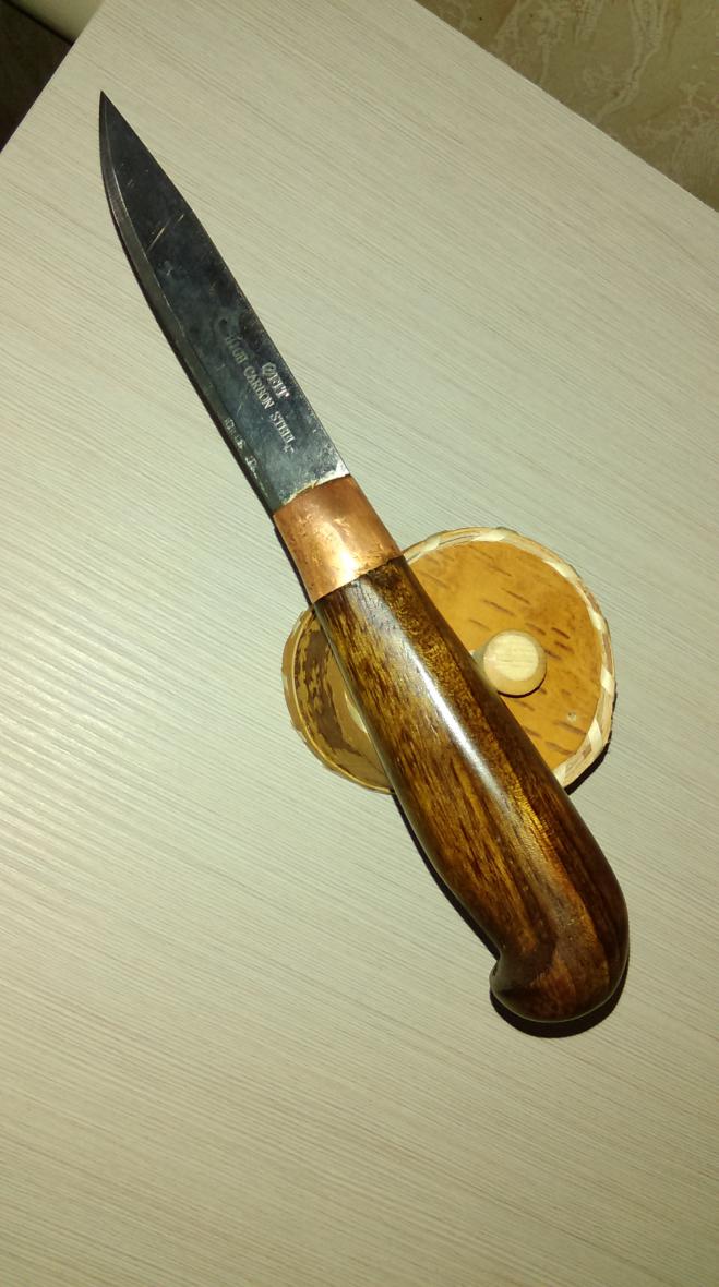 kaiman,делал для тренировки. Был ножик так себе, но сталь углеродистая. Давно хотел финочку с грибочком. Вот и смастерил себе "хотелку". Дерево орех. Ножен пока нет.