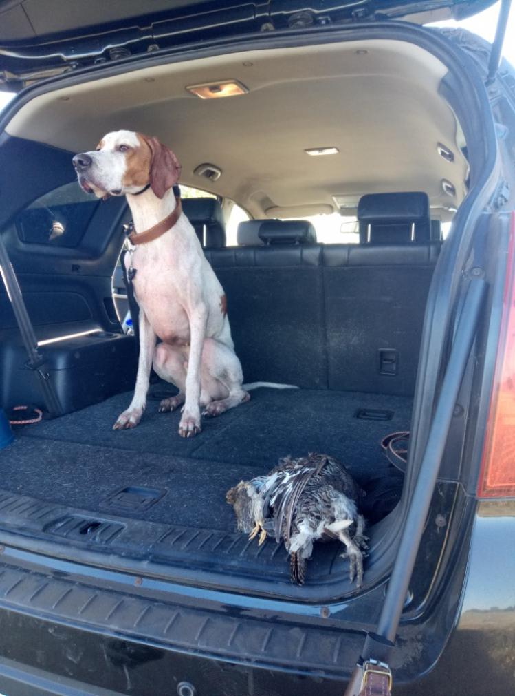 А мы вечером поехали с собакой поискать на водоёме подранков. Приезжаем, а там полным-полно охотников,все тоже за уткой приехали. Но никого не подняли-уехали.После них мы пошли по берегу.Всё берега вокруг истоптаны,представляю сколько с открытия охоты там народу перебывало.Пес нашел и выгнал из травы подранка,поплыл за ним, вспугнул с дерева вяхиря.Тот после выстрела тоже оказался в воде. Двоих собака не смог с воды подать,пришлось сплавать два раза.Шли обратно к машине-стойка!Коростель.Влетел из под ног.Отпустил подальше,чтобы не разбить выстрелом.Коростель уже крупный,такое ощущение что пролетный.Тем временем быстро стемнело.На сегодня хватит-пора домой.