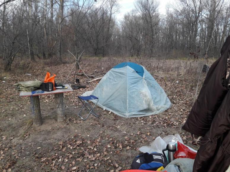 Палатку затянул целофаном, чтоб ветром снизу не поддувало. Утром было -3. Но в спальнике было несколько зябко, сколько одиноко...