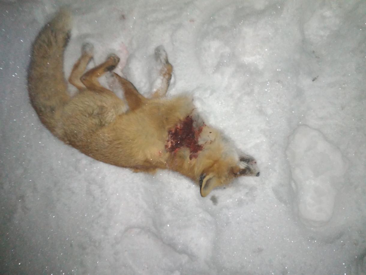 Сегодня -28 сидел на приваде с 20-00... Пришел только этот худощавый но крупный лис.... Встал метрах в 140 и долго стоял в кустах... Пискнул мышью тоненько один раз как кинеться на меня))) тормознул его только криком он развернулся боком и смотрит ну я и по мокушке вдарил... Шею и гортань вырвало... Попал в рот...