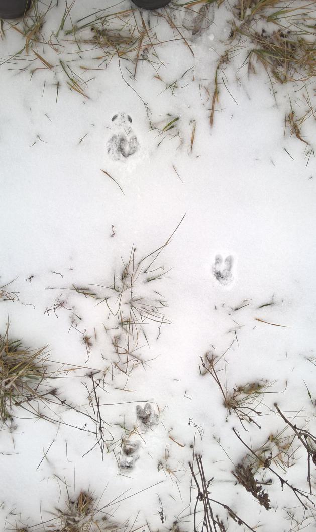 Всё рыбалка и рыбалка-надоело.Тем более,что все равно весь улов отпускаем.После долгого перерыва выбрались с товарищем на охоту,поискать степана.С погодой как обычно не повезло,но уж если приехали будем охотиться.В одно место заехали-нет следов совсем.Переехали в другое, там решили немного походить.Через некоторое время я отвлекся,глядь-а приятеля нет нигде,хотя был неподалёку-разбирался в чьих-то следах.Пригляделся повнимательнее - вижу он стоит и смотрит не отрываясь в ивовые заросли метрах в тридцати.Подхожу и тут в зарослях вскакивает какой-то зверь и начинает удирать от нас через густую траву.Я не разглядел его толком,но только видно что это не лиса.Зверь пробежал в десяти метрах от оставленной нами машины и помчался дальше,только следы на память оставил.Тем временем чуть дальше из кустов вылетает ещё один,потом ещё и ещё.Лицензии у нас нет, поэтому я и не собирался стрелять.А вот товарищ мой всерьёз расстроился,обиделся на меня и ходить после случившегося больше не захотел-запросился в машину. Значит пора домой,да ещё как-то сразу повалил снег. Потропить зайца так и не получилось.