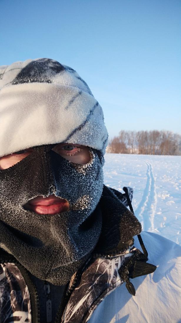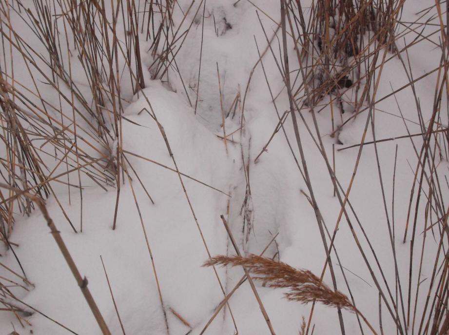 В прошедшую пятницу 2 часа гонялся за зайцем по джунглям из осоки. След из поля привёл меня к озеру. Скидка была прямо в заросли. Поднялся он от меня в 5-7 метрах, но я его не вижу а только слышу как тростник хрустит. Спрыгиваю с лыж и за ушастым в дебри. Пробираться сложно ,но и заю не легко , он не скачет а ползёт. На открытое место вылезет и метров через 100-150 опять в джунгли. Намотали так мы с ним км3-4 и я сдался. Я этого кустодрота так даже и не увидел воочию, хотя был впереди меня все время не далеко. Умотал он меня так ,что до машины я еле доплёлся. Сегодня решил его навестить. Из дома выехал в 7-45. Погодка чудная. Но в 8-00 снег как будто включили. Следы все позасыпало.Зайчика я не нашёл, зато увидел два ночных следа от хрюнов. Судя по копытам -не мелкие. Как то очково стало лазить по этим местам с 1 в стволе, да и снег валит . Решил возвращаться домой. В следущий раз зайца навещу.