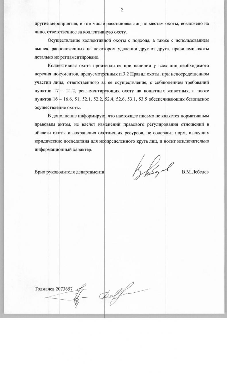 поднималась тема про коллективную охоту, вот позиция Департамента.