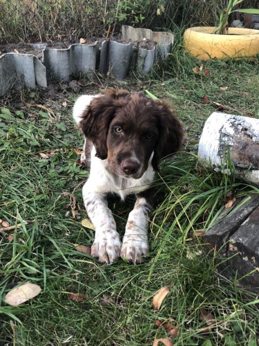 Растем и уже освоили команду "ко мне". Пока бежим за "накой", но очень резво и по первому зову.