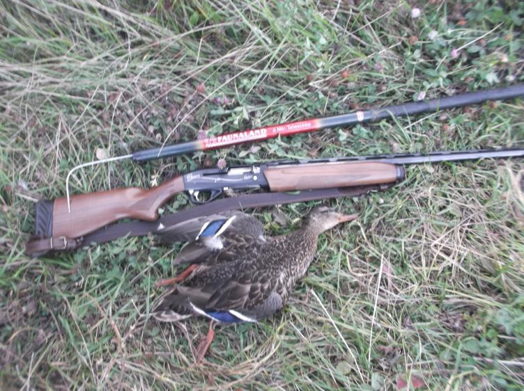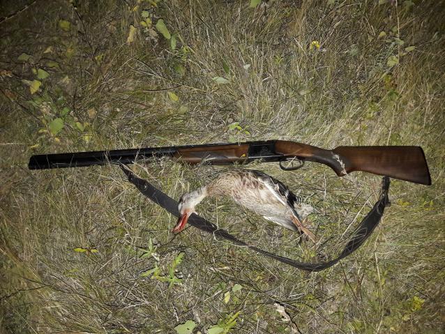 Сегодня 9-30. Поднял в камыше 6 кряковых. Бью по крайней. Первым мажу, вторым сбиваю. Смотрю куда падает. На остальных пох. Пускай летят. Начал искать и не могу найти.Уже расстроился ,как вдруг чуть ли не наступаю на подранка.Вцепляюсь в него обеими руками и к машине. После фотосессии кряк был умершвлён как домашняя утка-секирбашка.