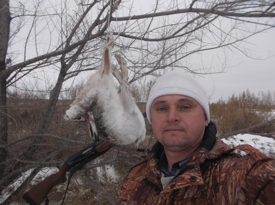 Охотился сегодня с 8-00 до 13-40.Нагулял км 15-17. Первый заяц меня мотал часа 3. Гуляли мы с ним и по пашням и по куровнику и по бурьяну лазили. И ни как он не мог нажраться. Я уже подумывал оставить его в покое, но потерянного времени на него было жалко. И вот он наконец то начал делать сдвойки и скидки. И попёрся он к жд. дороге. Но как на зло на его след залезла лиса и мне пришлось то и дело опускать взгляд на следы под ногами. Да ещё проезжал таварняк. В итоге подъёма я не заметил и не услышал. Только гляжу несётся мой зая на всех парах уже метров за 100. Проводил я его суровым взглядом и пошёл искать других. Следов много, всё понапутано . Только начнёшь выходного тропить как к нему присоединяется сородич и они уже вдвоём начинают устраивать скачки как в феврале. Находился я за ними -устал. Решаю идти к машине по прямой, а до неё где то км 3-3,5. Повезёт так повезёт , а нет так нет. И повезло .Вижу скидку. По ней иду-вот и сдвойка и опять скидка в бурьян. Кружусь на 10 метрах. И вот оно-зашуршало с права. Заяц подорвался метрах в 20-25. Вскидываюсь - выстрел и первым же (0 магнум Феттер) попадаю зайцу в голову и заднюю лапу. Ура -взял. Усталость как рукой сняло. До машины на крыльях долетел. Разделывал дома ещё теплого. Молодой хороший зайчик. Всем добра.