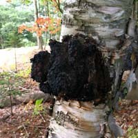 Чага – это стерильная (иначе говоря, бесплодная) форма гриба Трутовик или Инонотус скошенный. Относится к роду Инонотус, отделу Базидиомицеты. Более известное название — березовый гриб — чага получила неспроста: чаще всего растет именно на березах (виды пушистая и повислая), реже поражает другие культуры — рябину, ольху, бук, вяз, клен. Широко распространена в березовых рощах, в тайге и лесостепи средней полосы России, Украины, Беларуси, где растет практически повсеместно. Встречается на севере США, в Корее. Что мы знаем о чаге? Издавна препараты из этого чудаковатого гриба использовались как противоопухолевое и противогастритное средство. Гриб использовали не только для лечения – из него делали поделки и обереги. Сегодня о полезных свойствах и применении чаги знают многие люди, которым пришлось столкнуться с онкологией. Не оставили эту тему без внимания и мы. Особенности паразитирования Чагу можно назвать уникальным грибом, жизнь которого начинается с маленькой споры Inonotus obliquus. Попадая на поврежденный участок коры дерева, спора прорастает, формируются типичные гребневидные наросты. Заражение приводит к белой ядровой гнили древесины. В ложном ядре формируются светло-желтые полосы и пятна, которые впоследствии сливаются и расширяются. В гнилой древесине годичные слои легко отделяются один от одного. Вокруг гнили формируется защитная зона бурого цвета, внутри можно рассмотреть черные линии, на изломе видны вкрапления грибницы ржавого цвета. Вырастая до порой огромных размеров, чага аккумулирует в своем теле полезные вещества, которые получает из дерева. Морфологическое описание и ботанические особенности Тело чаги появляется спустя 3-4 года после заражения. Представлено черными гребневидными наростами неправильной формы, пронизанными прожилками из бесцветных гиф. Размеры: от 4 до 40 см в диаметре, от 10 до 15 см в толщину. На разрезе тело имеет плотную структуру темно-коричневого цвета. В месте контакта с деревом мякоть окрашена в рыже-бурый цвет. Поверхность наростов изрешечена трещинами. Срок жизни составляет 10–20 лет: гриб растет и углубляется в древесину, через несколько лет на противоположной стороне прорастает плодовое тело гриба со спорами, которое состоит из трубочек. Развивается оно под корой, гифы могут распространяться на 0,5-1 м по протяженности ствола. При созревании спор формируются гребневидные выросты, пронизывающие кору, обнажая гименофор буро-коричневого цвета. Сначала споры не имеют цвета, затем становятся рыжеватыми. Стенки спор толстые, с одной-двумя каплями масла внутри. Со временем дерево погибает. Сбор и заготовка Гриб заготавливают в любую пору, но легче его найти в период с поздней осени и до весны, когда нет листвы. Кроме того, в этот период отмечается наибольшая биологическая активность гриба. Для поиска углубляются в лес (снимать с деревьев вдоль оживленных трасс не рекомендуется), выбирают крепкие деревья. Срезать чашу с погибших или больных деревьев, оснований старых деревьев не стоит — активность у такой чаги незначительна. Старая чага исключительно черного цвета, которая имеет очень большой размер и уже крошиться, также не подходит. Нарост отрубается топором под основание, рыхлая светлоокрашенная часть отсекается. Сырье, нужное для заготовки – это наружная часть и твердая середина, без 