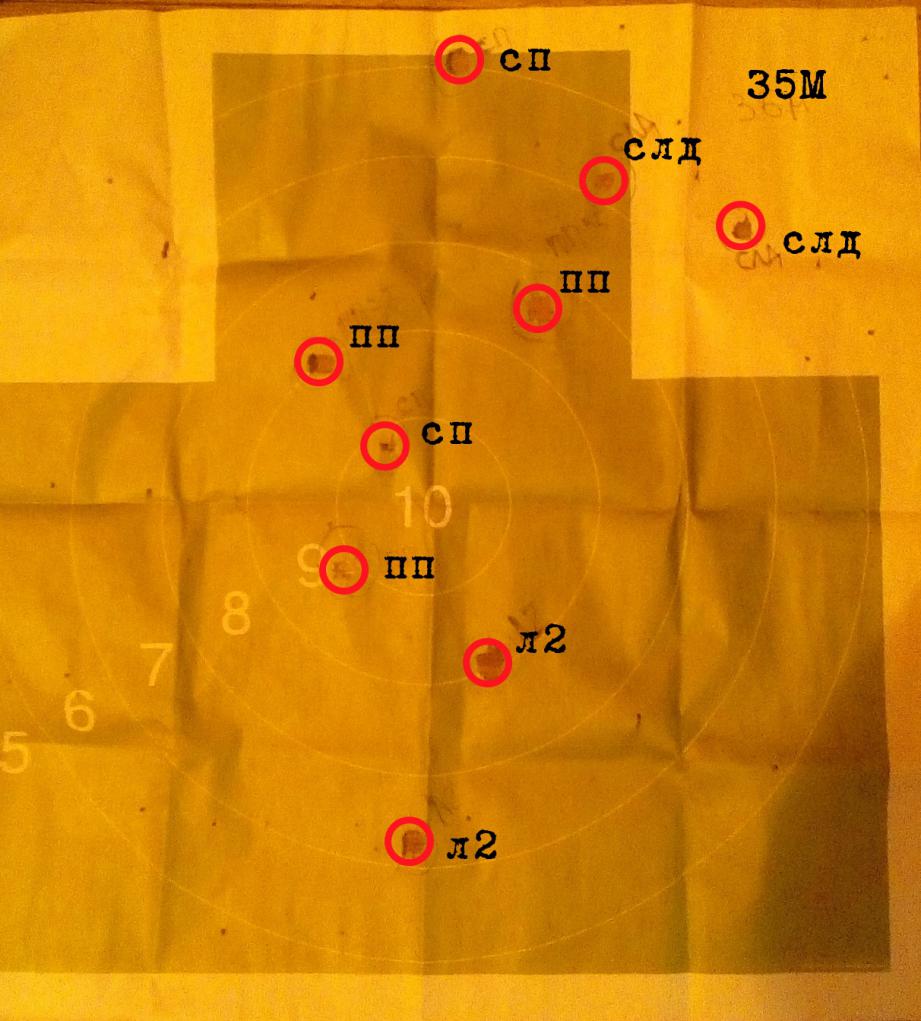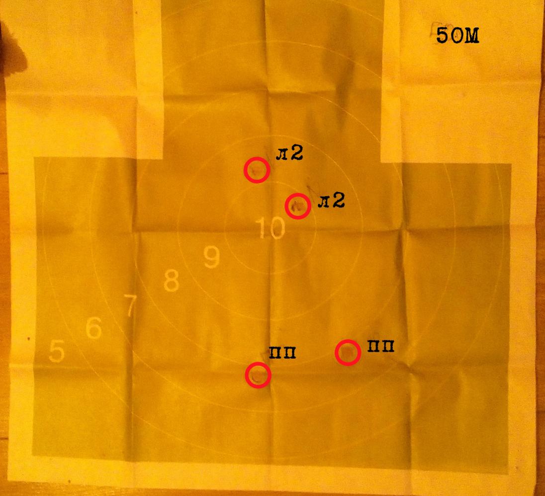 На последнем фото видно, что первая пара разошлась по мишени, а вторая почти одна в одну, касаясь краями, при том, что ленинградка пришла оба раза плашмя.