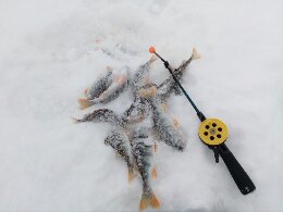 Просто повезло, видно попал прямо на стаю. С одной лунки 9 шт за 5 минут, ну просто как из пулемета. Не крупный, но съедобный. Личный рекорд с одной лунки и почти на каждом махе. |