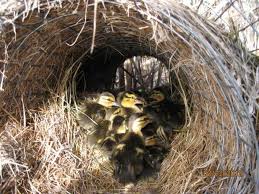 По поводу утят: гнездо служит безопасным домом для выседки яиц и защиты пока утка кормится. Как утята выводятся они вместе с уткой покидают гнездовье и прячутся уже в камышах.