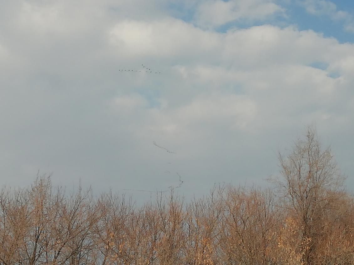 Гуся в выходные видели. Но, как говорили опытные коллеги, его было не много совсем. Пролетали одиночные стаи и все на кислороде. Красиво конечно. А как гогочут-то прекрасно! Эти фото все в Саратовской области сделаны за пятницу и субботу. В вскр с утреца я тронулся в Самару. Примерно в 11 часов, в 7-10км от Саратовской области (уже в Самарской) я увидел три стаи гусей впереди летевших слева на право пересекая трассу. Прибавив газа, я надеялся догнать их на пересечении. Удалось! Третья и самая маленькая стая пролетела надо мной метрах в 40-50!!! Я был в восторге, если честно). Я в Саратове их так близко не видел). |