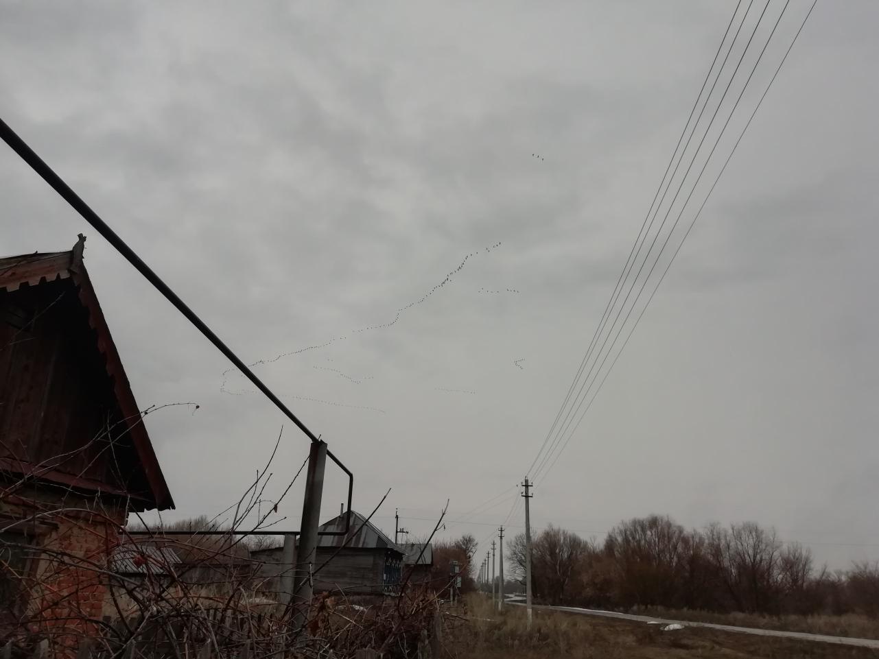 Сегодня по Обводной Самары косяк гусей голов 60-70 от Белозёрок на Алексеевку тянул метров 100 от земли.