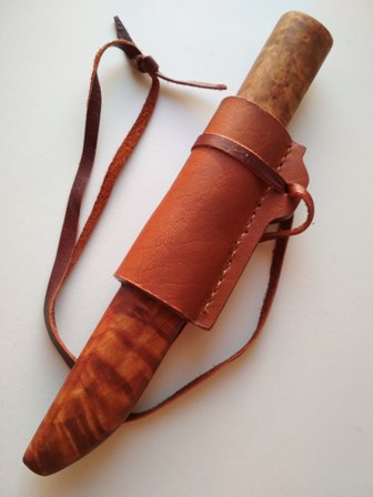 Vital1969, да и вообще вопрос к знающим, подскажите. Сделал нож из покупного комлекта, а ножны ждут своего часа. Нож по типу финки, хотел попробовать рукоятку с грибком. Клинок KARESUANDO, рог, кожа, береста, берёза, всё для начинающего.