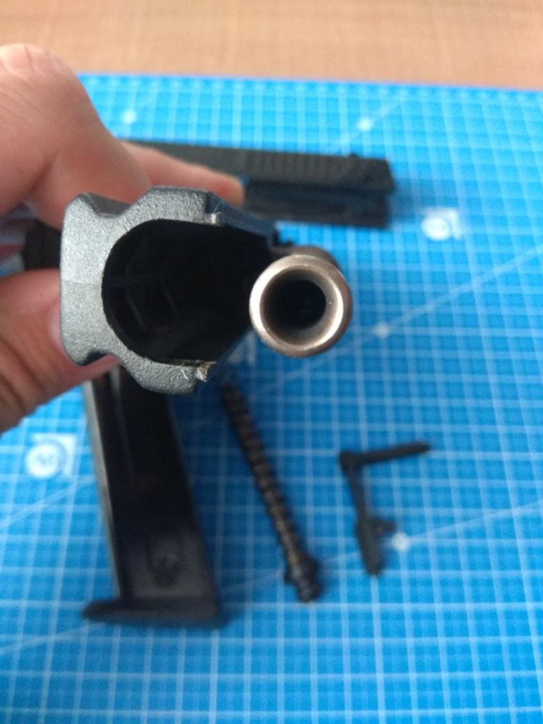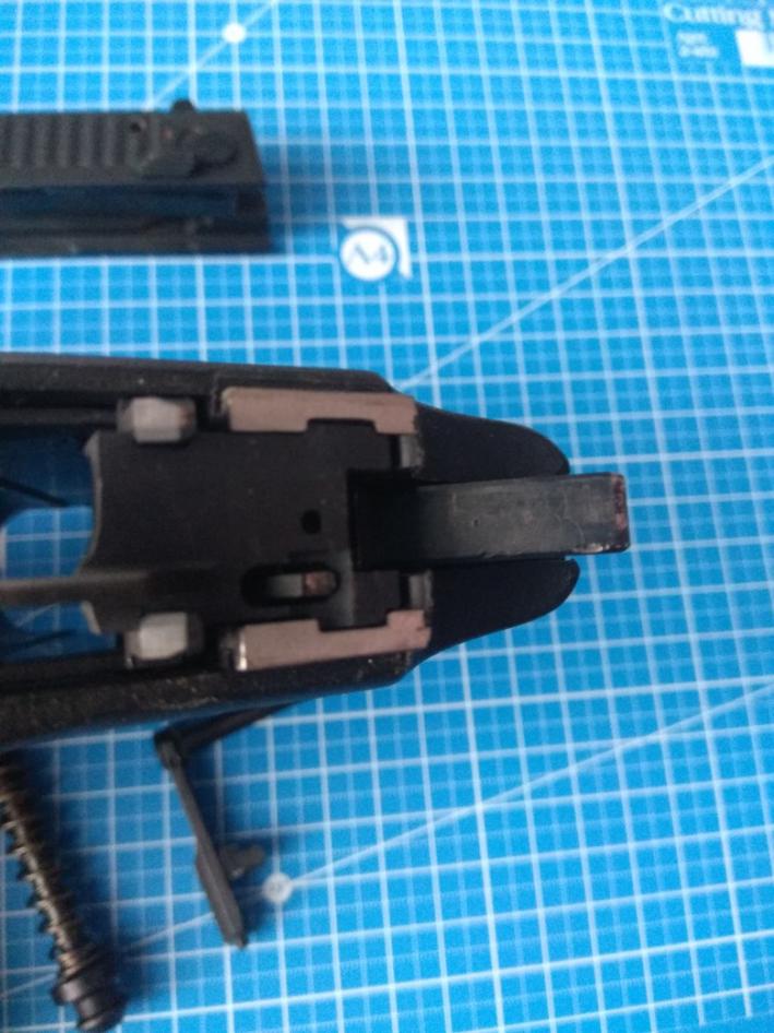 Просвет не особо видно. Проточка под патронником, видно её вот с такого ракурса (нужно убрать направляющую и пружину):