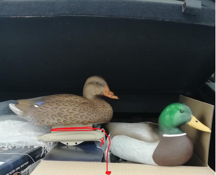Не понял про фиксируется. Оба конца привязаны к килю спереди. Чучело четко простояло всю охоту.