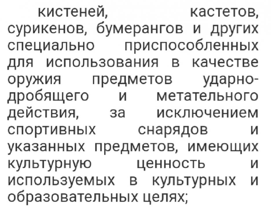 А кто и как определяет классификацию оружия самообороны? Кусок арматуры что? Брусок? Можно много перечислять. А вот бита бейсбольная уже спортинвентарь. У меня так на ней и написано,со ссылкой на пункт на скриншоте. Последний раз редактировалось DimOK; 05.10.2019 в 03:33. |