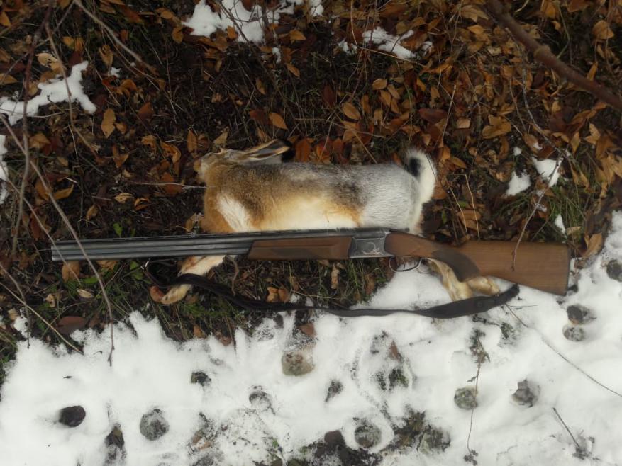 Пока добыл первого русака, пять раз бросал след - то псины перехватывали( понимаю егерей что их отстреливают) то " фашисты "- но как говорится в священной книге- ищите и обрящите . ..вот я и бросил места где собрался народ и на огороде взял своего зайчика . В вишнёвом саду, молодого, стрелял один раз единицей метров с 25. Попадание странное -две дробины в шею, одна сломала заднюю лапу. Куда делись другие дробины - секрет ))