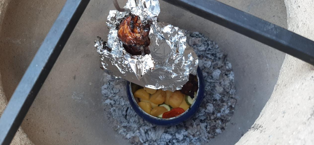 Ну Азия так Азия. В выходные немного " покашеварил". Прогрел тандыр. В меню были: самса, лопатка маринованная и чугунок овощей на углях.