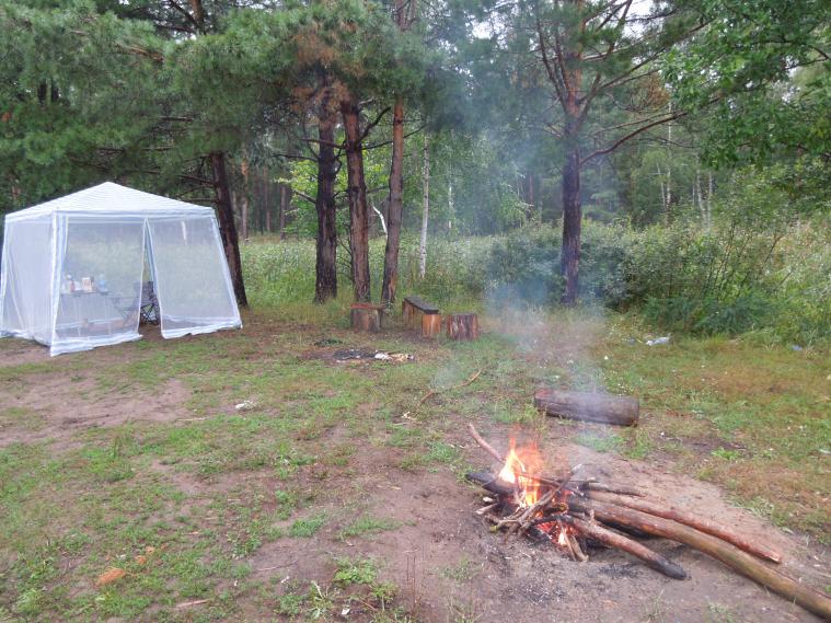 впервые за 20 лет на открытие поехал один. вчера на работе все порывался пораньше отпроситься, но так и доработал до 17-00. приехал в город, по быстрому собрался, заскочил в гараж, в магазин и вот уже еду навстречу неизвестности. не разбили ли лесовозы дорогу на въезде в лес, найду ли свободное место. ага, в лес проехал, другая мысль лезет в голову, успею ли до темна? лесом пилить час примерно. по следам смотрю, народ есть. ну да ладно, где нибудь все равно приткнусь. подъезжаю на первую точку (в том году там открывались), а там пусто, никого нет. вот так да! вот это удача. слышу у соседей и дальше по берегу вовсю веселье уже. думаю, блин, а вдруг кто знакомый, да и светло еще, поеду поздороваюсь. но все таки передумал. пока ставил шатер и дрова готовил, кобель обследовал все болота вокруг. а тут уже и стемнело. если не считать ночных гостей, которые поворотом ошиблись, дождя, начавшегося в 1ч.48мин. и рыбаков, забывших про открытие охоты и припершихся в 4ч.25 минут, то можно сказать, что я даже поспал)) а зарядивший с ночи дождь все никак не хотел заканчиваться, изредка прекращаясь, как бы давая возможность немного размяться. но тем не менее одного маленького чирочка добыл, не отходя от шатра, а кобель благополучно достал и подал. а потом снова начался дождь и я засобирался домой