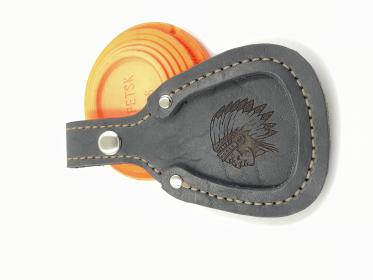 Натуральная кожа. Верхний слой 2,2мм. Нижний слой - 5мм, подошвенный чепрак (упор не гнется под весом ружья).