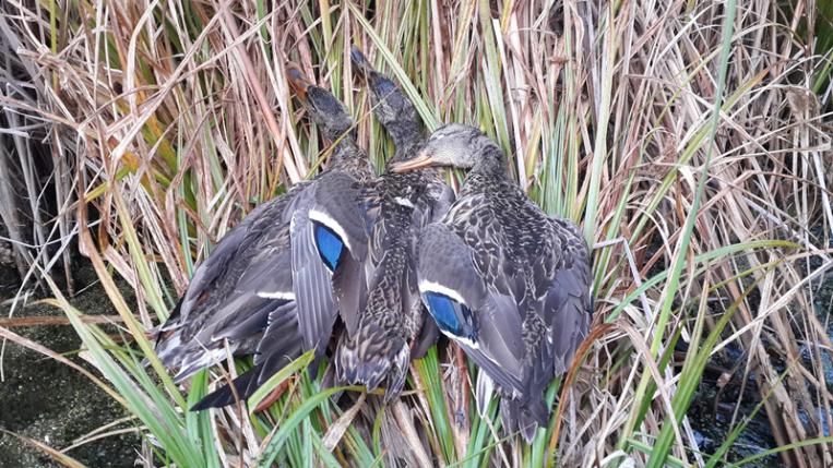 Сегодня утром поднял штук 8 крякашей с болотины. Они меня спалили первыми и поднявшись стали улетать от меня на восходящее солнце. Выстрелил дважды тупо в их сторону (метров 25-30), прицелиться не возможно - солнце слепит. Но увидел ,что после второго выстрела одна утка тряпкой упала за угол камышей. Я туда . И нате тебе- лежат две . Когда вторая упала даже не видел. Больше охотится не стал , решил свою норму не превышать.