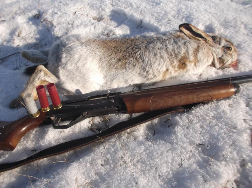 Решил сегодня , что посредине недели можно прогуляться и по ОДУ. Народу должно быть поменьше. И не прогадал . Следов конечно за эти дни очень много, и понять что вчера ,что позавчера невозможно. По этому решил ходить чисто по перспективным местам как при чернотропе. Заяц поднялся из высокой травы справа метрах в 5. Помчался по диагонали от меня на лево. Первым метров 15-мимо , вторым цепляю по задней ноге, третьим-мимо , четвёртым взяв получше упреждение метров под 40 -прямо по голове. Заяц начал вытворять кульбиты, всё добыт. Пока я подошёл, зая уже тоже дошёл. Крупный прошлогодний самец. Так что в Оду тоже зайцы есть ( это для некоторых).