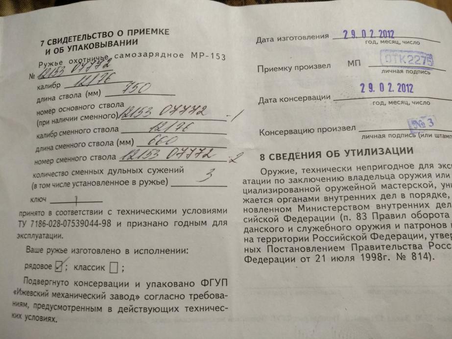 Продам МР-153 стк,2012 года выпуска,куплено в магазине в 2013 году.Длина первого ствола 750 мм,настрел с него примерно 150 выстрелов,состояние отличное.Длина второго ствола 660 мм,настрел примерно 50 выстрелов,состояние отличное.Перезаряжает все навески патронов,самокрута не видело.В комплекте один чок(1:0),и два(0:25-0:75) дульных сужения.Также отдам в комплекте насадку парадокс,не пользовался ни разу.Ортопедический приклад в комплекте.Причина продажи-вес ружья,для ходовой охоты с каждым годом становится все тяжелее.Купил иж-18.Ценувижу в 22 т.р. Торг разумный приветствую.