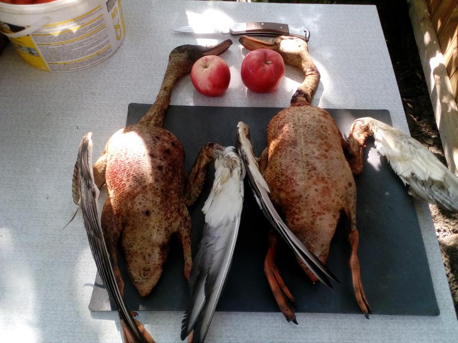 Открылся в субботу пятью чирками. Утки было много. В этом году охотников было на открытии побольше чем в прошлом.По кряковым стрелять не стал, показались тощеватыми. За пол часа утренней зори набил норму из чирков, что бы мужиков угостить на работе. Что то фотки с телефона не хотят грузится, только с фотика что уже дома ощипанных сфоткал. Всех с открытием.