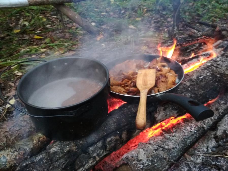 Заранее приношу извинения, если какая мысль или фотка уже засветились в параллельной теме. Ведь наша жизнь – есть переплетение сотен тем. И никак не выйдет провести гребешком и разделить жизнь на параллельные пряди. Ну так вот, заброска произошла. Мы в лесу. И первый вопрос – вода. Его я взял на себя. Облазил окружающий лес, несколько раз пытался набрать воду с болота – что-то не понравилась мне эта суспензия. Пришлось брать воду из большой лужи в сотне метров от домушки. Цвет коричневый, в жидкости много живности. Даже фильтрация не делала воду питьевой. Требовалось длительное кипячение. Но хотелось нормальной проточной водички. И принято решение сделать целевую вылазку. По GPS в 6 км от нас значилась речушка, вытекающая из болота. Туда мы и направились. Белых грибов в лесу не то чтобы «косой коси», а можно прямо комбайн заказывать. Но, к сожалению, они все старые и червивые. Несколько малышей погоды не сделают. Протопав пару км по лосиным тропкам, к своему удивлению, наткнулись на вполне свежую канистру. Ее помятость нас не смутила. В лесу ничего не нужно бросать, все пойдет в дело: канистра, проволока, гвоздь… Внутренность оказалась вполне чистая, из-под воды. Берём, очень кстати. Перескочу сразу на конец намеченного пути. Реку мы так и не нашли, хотя навигатор показывал, что мы переходим её. А шлепали мы в этот момент по самой что ни на есть болотине, по звериной тропе. Пришлось возвращаться ни с чем. Но, видимо, водяной тумблер перещелкнул внимание на окружающий мир, и мы начали находить ягоды, грибы… Никогда не ел такого вкусного шиповника. А тут еще семейками начали попадаться лисички. Черви их не любят что ли? А нам в самый раз. Вот и пригодилась пустая канистра. Вырезал окошко под грибы. Пока дотопали до домика, набрали грибов на два дня пропитания. Ну а вечером опять праздник живота. И опять насухую. (( Обедов у нас не было. Приготовление же ужинов я тоже взял на себя. Последний раз редактировалось Vital1969; 11.11.2020 в 05:45. |