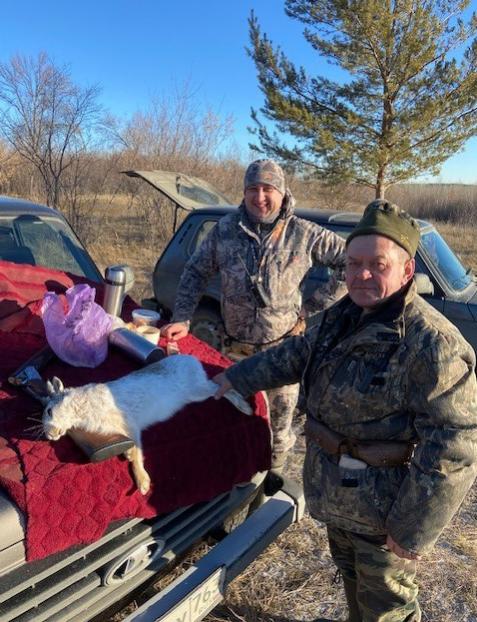 Снега почти нет, но решили пройтись по ближайшему полю и вдол ьпосадок, за полчаса подняли двух. По первому промазали, лежал в плотной траве, не были готовы, что он там будет. А второй был на краю поля за земляным бугром, у него уже шансов не было |