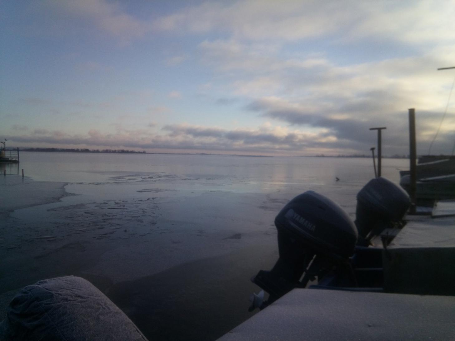 -12 за бортом, поиграли в ледокол, расставились как смогли в затишке, через 3 часа уже выдалбливали чучела изо льда, решили не испытывать судьбу и вернулись на причал.