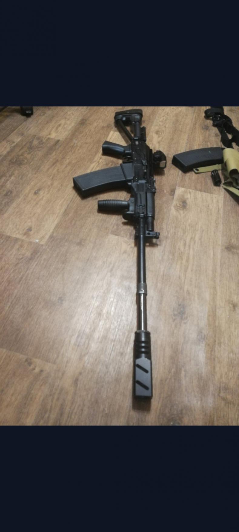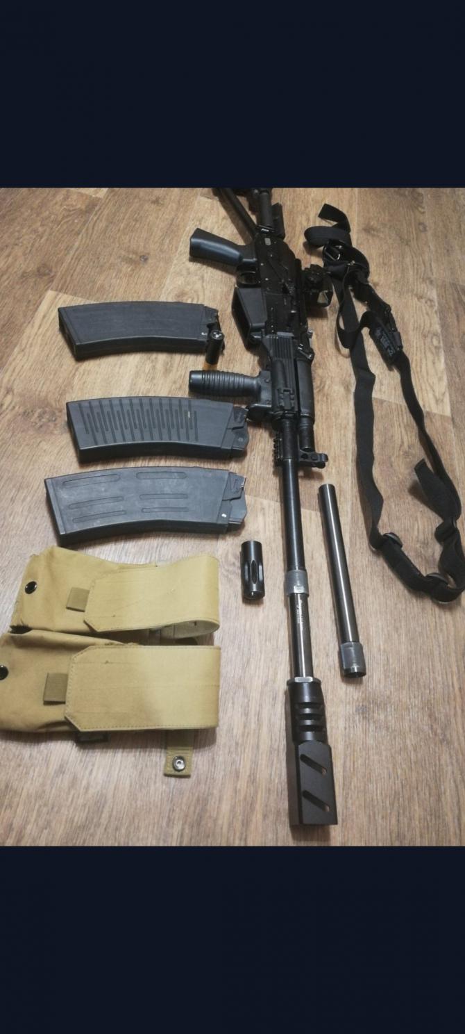 приобрёл в 2016 году,я второй владелец. первый им почти не пользовался( было конфисковано за синьку) мой настрел один сезон и 500 -600 патронов.с 17 года стояло в сейфе( на всякий случай) в комплекте 3 магазина 8 мест.ДТК Ильина ( 2 камеры),насадка парадокс,насадка супер гусь,подсумок под магазины,рукоять управления огнём,коллиматор(китай,но отдачу держит),ремень Долг 2,чехол с кучей карманов. за всё 35 000.