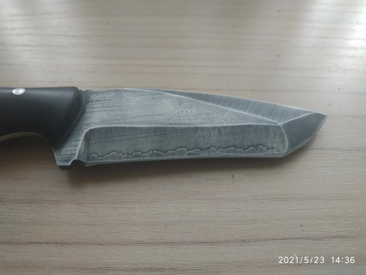 Продан. Нож изготовлен на заказ в единственном экземпляре.Длина лезвия 95 мм, ручка 110 мм, обух 2,6 мм.Сталь 65Г , закалка+отпуск, воронение,ручка накладная эбонит. Чехол натуральная кожа.Нож новый.Без торга. Цена 3000р т.89023750091