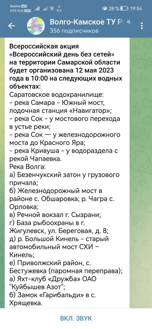 Каждый год проводятся мероприятия по чистке водоёмов от сетей.