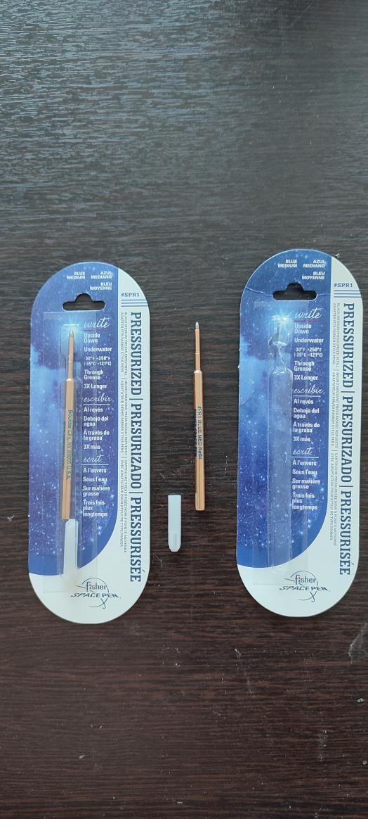 Купил себе пару стержней Фишера для "космической ручки". Ну да, дороговато. Зато хватит очень надолго. На морозе не замерзнет, на жаре не потечет, гарантия от засыхания 100 лет)). Пишет и по замасленной бумаге, и под водой и проч.