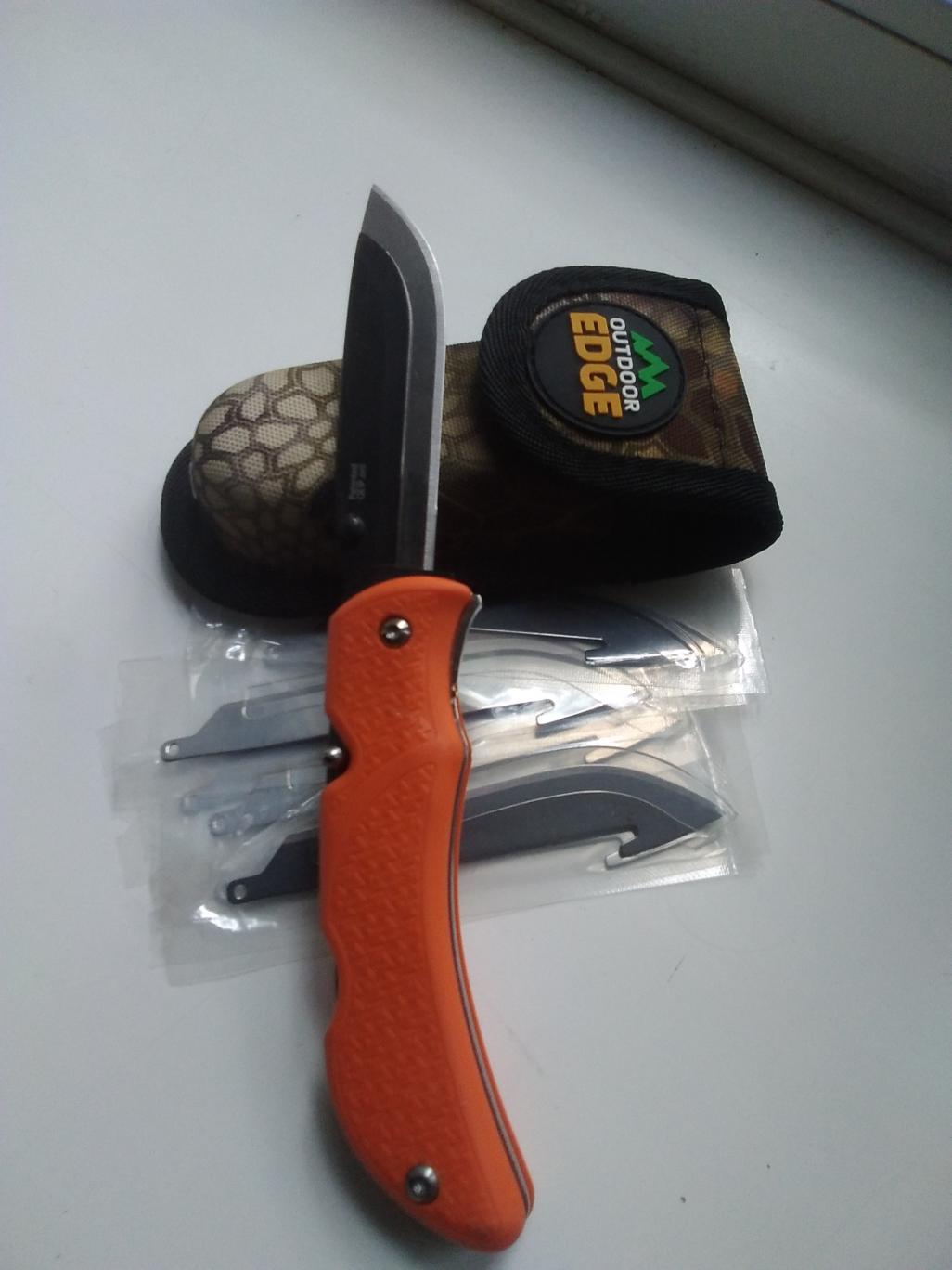 Продам раскладной нож Outdoor edge, с двумя лезвиями одно лезвие сменное, в комплекте восемь, новых, лезвий. Нож не новый, не много б/у. Цена 7 т. р. Тел. 89372091881.