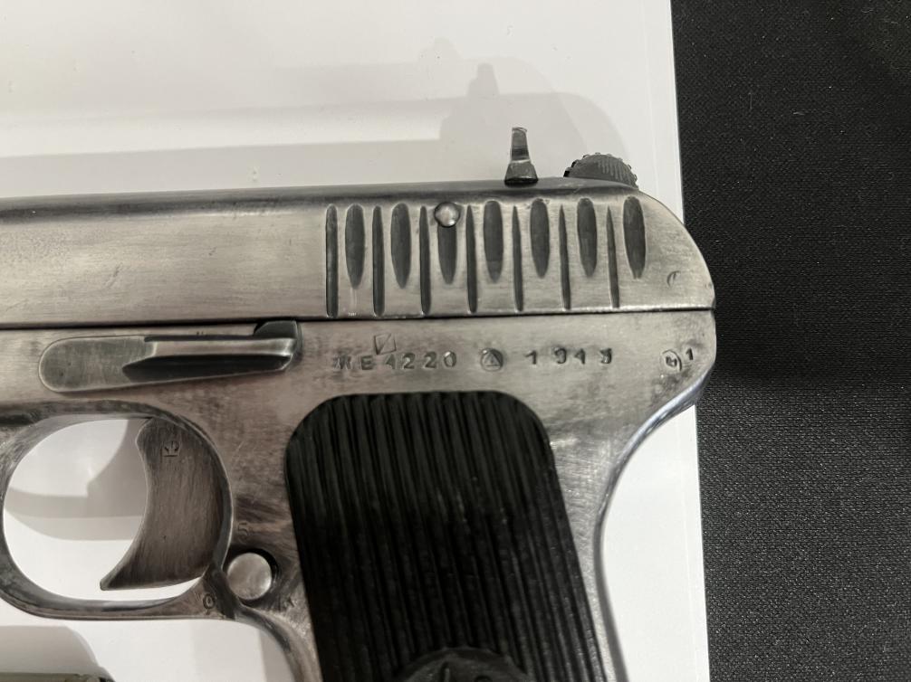 Добрый день, продам лидер ТТ 10х32 1945г. В комплекте 2 магазина, кобура. На данный момент установлена усиленная пружина, усиленный направляющий стержень, новая направляющая втулка, нова спусковая пружина. Отдам заводскую пружину, втулку, стержень, для постановки на учёт. Для тех кто не в курсе, при использовании новых патронов выбивало заводскую направляющую втулку. При установки усиленного направляющего стержня пистолет не встаёт на предохранительный затвор.