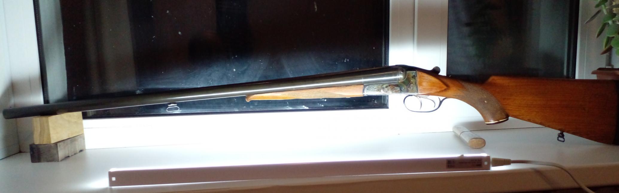 Иж-54 , 12 кал., год выпуска "КК", вес 3300 гр., длина ствола 730 мм . Дерево бук. Пистолетная рукоять . Заменены брандтрубки и бойки . Ружьё в отличном рабочем состоянии .