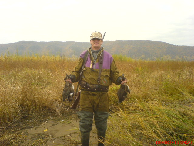 Вчера стоял на Соку. Приехал в обед. С воды поднялась стая голов 30 и ушла в направлении карьерных озёр. На спиннинг выловил несколько щучек, все до кг. (отпущены в освояси). К вечеру выставил чучела. После захода солнца подсела утка, метрах в 45. Минут 15 мы с ней перекрякивались, она подплыла достаточно близко для выстрела, но стрелять не стал, всё равно бы её не достал в эЛьке (глубоко). Обидевшись, что "стая" не приняла её в свои ряды, утка перелетела в более укромное место. Стайная утка тянется вдоль Сока на Волгу, идёт высоко.