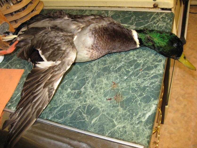 вечерка, рядом подсели три кряквы, итог селезень наш. Интересно я его доставал, возле берега встал лед примерно 3-4 метра в длину, на лодке за кряком не поплывешь...вдруг лодку порежешь...решил съездить домой за спиннингом с блесной, оказалось не зря: